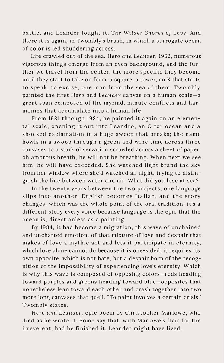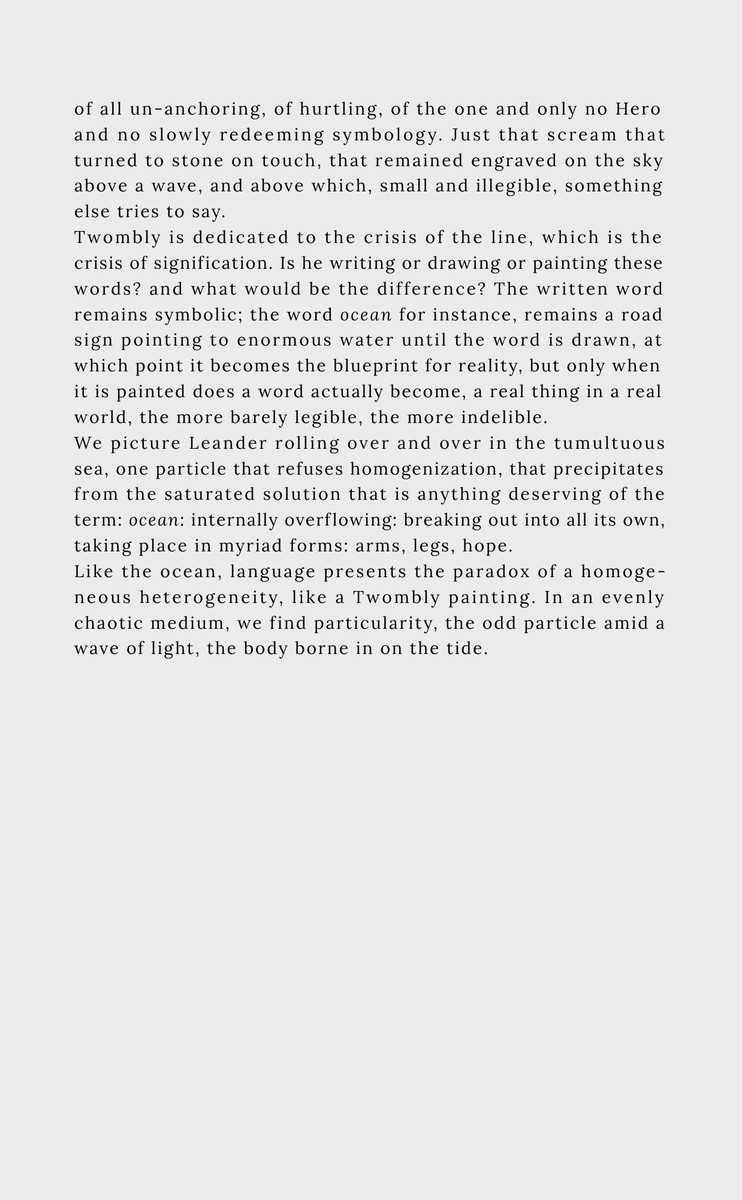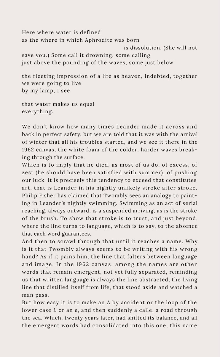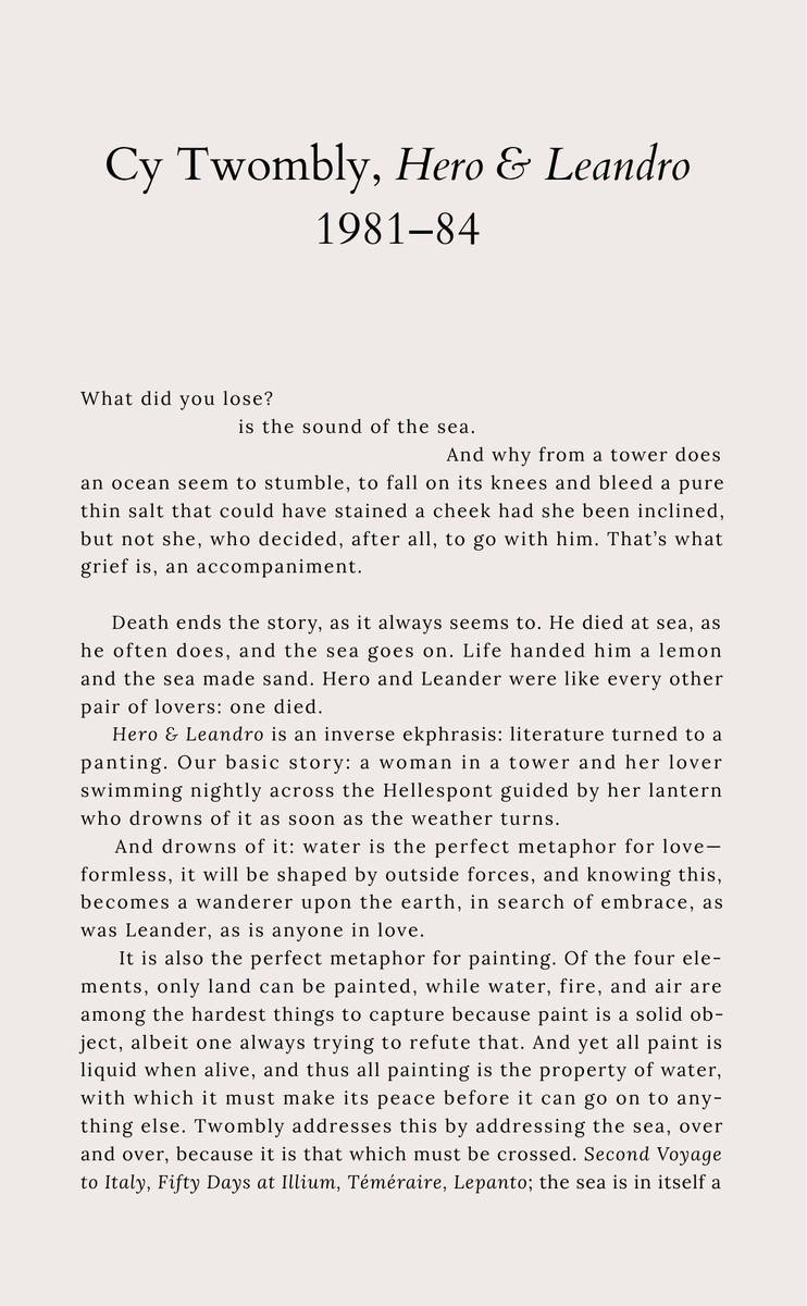 This Interlude features Cole Swensen's essay "Cy Twombly, Hero & Leandro, 1981-84" in conversation with Music for 18 Musicians (1974-1976) by Steve Reich.