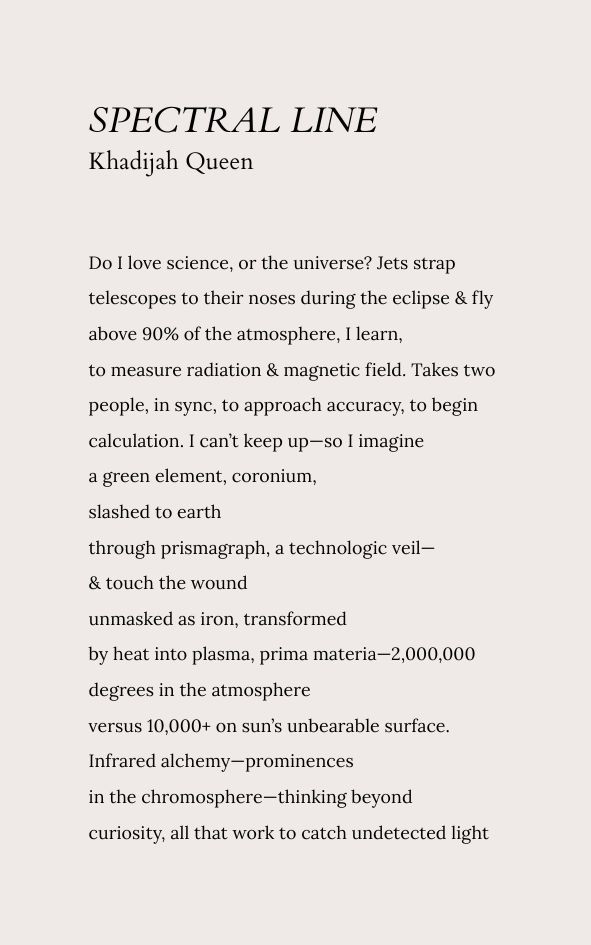This Interlude features "Spectral Line" an unpublished poem by Khadijah Queen – 2025 recipient of the Cy Twombly Award for Poetry at the Foundation for Contemporary Arts – in conversation with Klein's it is what it is in d minor from the album sleep with a cane (Parkwuud Entertainment, 2025).