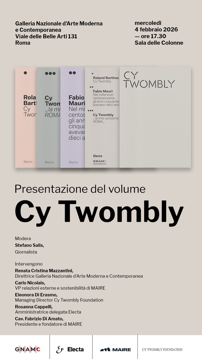 On February 4th, at 5.30 pm, the GNAMC—Galleria Nazionale d'Arte Moderna e Contemporanea in Rome will present the publication Cy Twombly, published by Electa with the support of Gruppo MAIRE.